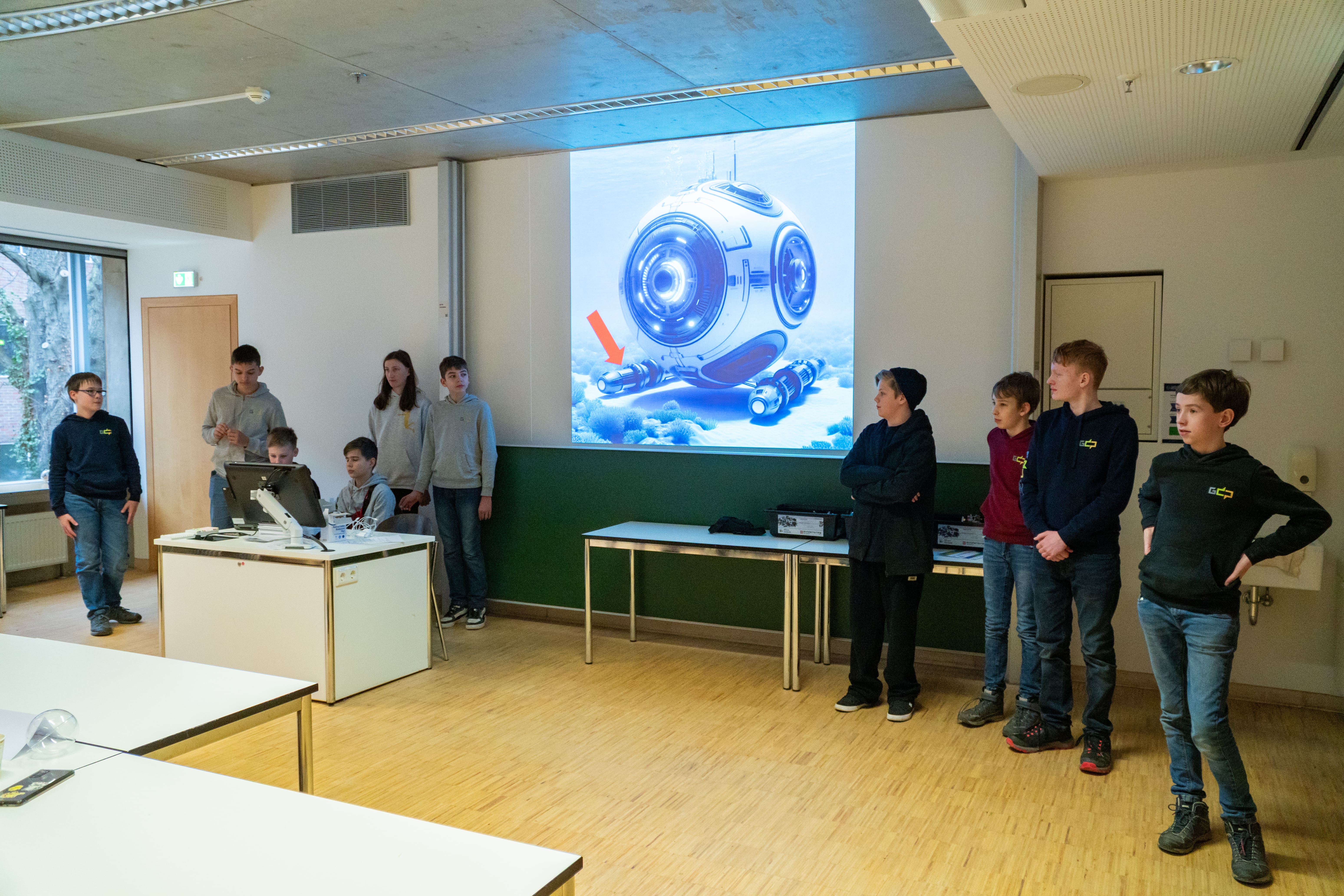 Jeden Montag im Laufe des Schuljahres 2022/23 findet das Ganztagsangebot unserer Kolleg*innen statt. Dabei unterstützen sie fachlich und technisch die Schüler*innen bei der Entwicklung von neuen technologischen Lösungen für das Forschungsprojekt, bei dem Aufbau eines programmierbaren Roboters und Lösung der Aufgaben, die sich in dieser Saison dem weltweiten Thema „Energie“ widmen. In diesem Jahr haben vier Schüler*innen aus der 6. Klasse und jeweils ein*e Schüler*in aus den Klassenstufen 8 und 10 teilgenommen. Die Schüler*innen haben dabei in unterschiedlichen kleineren Teams zusammengearbeitet, so gab es z.B. ein Team, das sich hauptsächlich mit dem Forschungsthema beschäftigt hat.